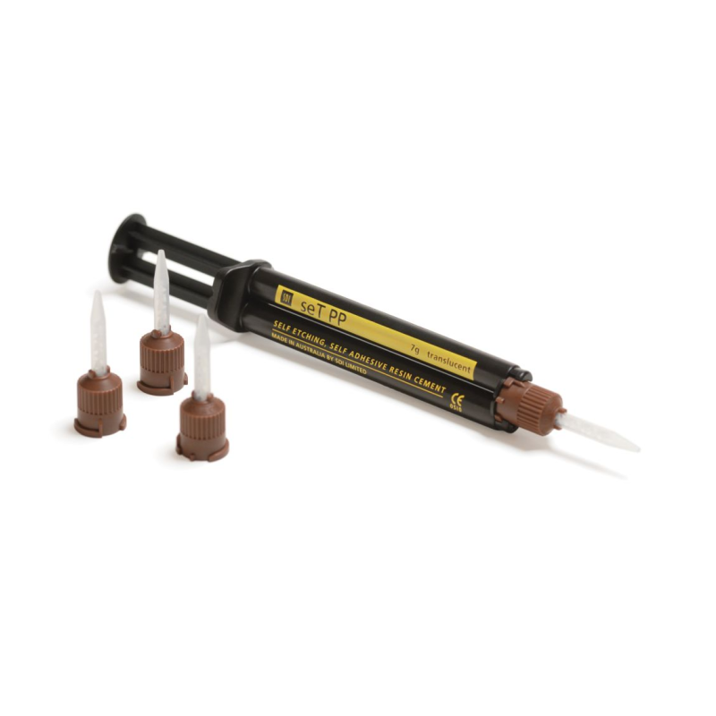 seT PP to samowytrawiający, samoadhezyjny cement kompozytowy o podwójnym mechanizmie wiązania, przeznaczony do osadzania uzupełnień wykonanych z ceramiki, metalu lub materiału kompozytowego.