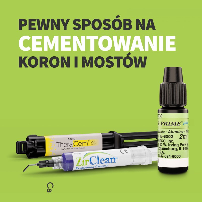 Pakiet zawiera strzykawkę 8g materiału TheraCem Ca, buteleczkę 2 ml materiału Z-Prime oraz strzykawkę 5g materiału ZirClean.