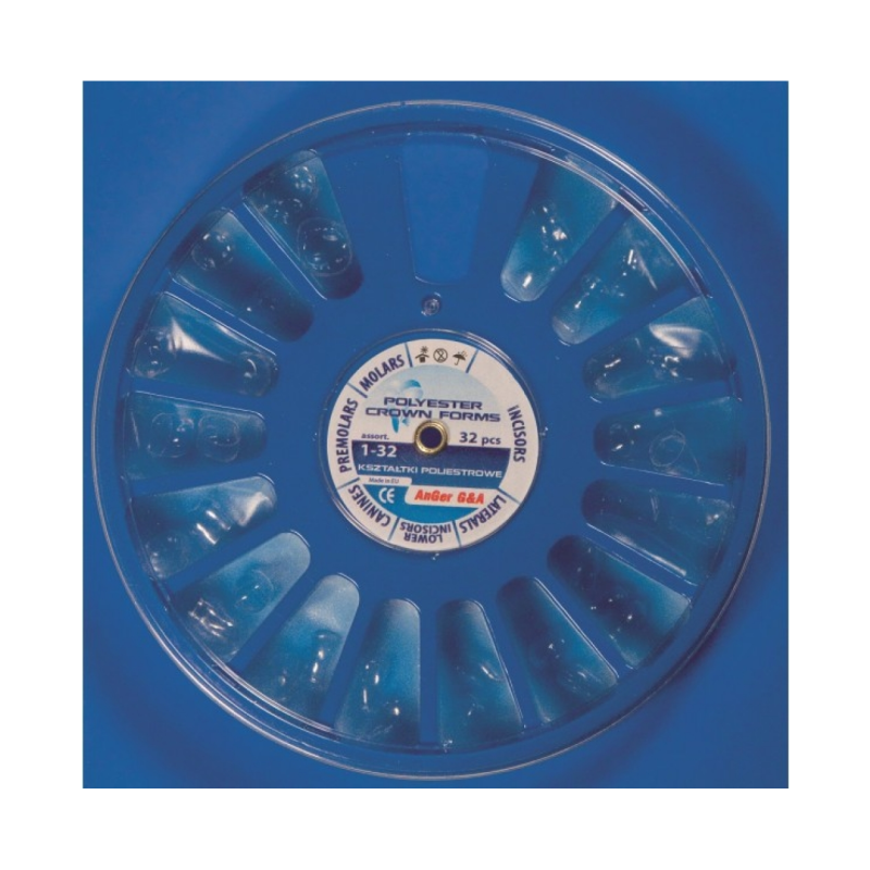Zestawy koron do odbudowy zębów. Każdy zestaw zawiera 32 sztuki.