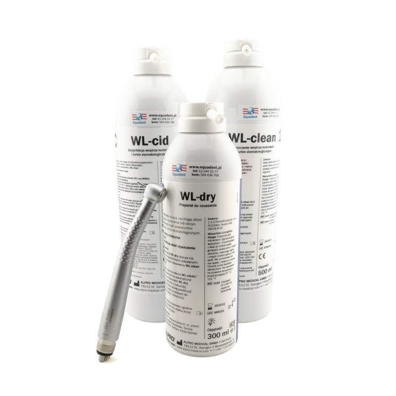 WL-CLEAN - Bezalkoholowy preparat do oczyszczania przewodów wodnych, powietrznych oraz całego wnętrza końcówek stomatologicznych, wszystkich producentów.