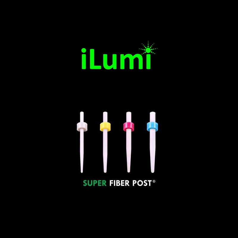 Ilumi Post - biokompatybilne wkłady z włókna szklanego które w całości przewodzą światło wzdłuż całego wkładu pozwalając na równomierne utwardzenie cementu w kanale korzenia zębowego.