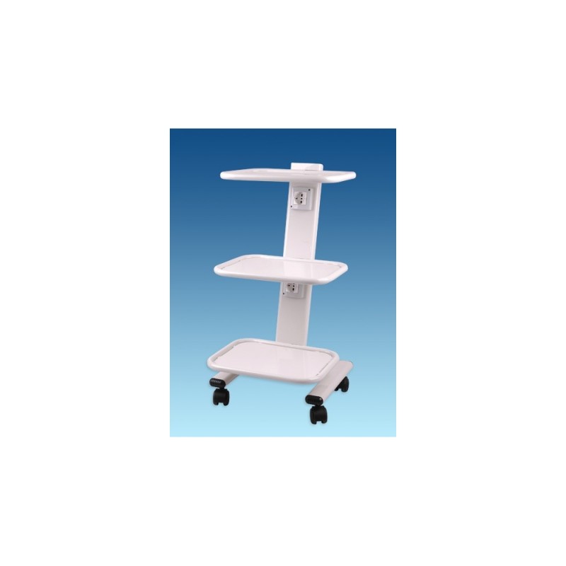 Posiada trzy metalowe półki o wymiarach 40 x 30 cm zakończone owalnymi brzegami