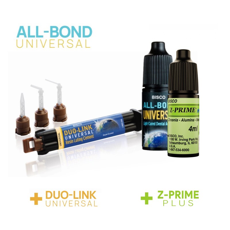 Pakiet zawiera system wiążący do każdego rodzaju odbudowy - All-Bond Universal, podwójnie utwardzalny cement - Duo-Link Universal oraz primer zwiększający adhezję - Z-Prime Plus.