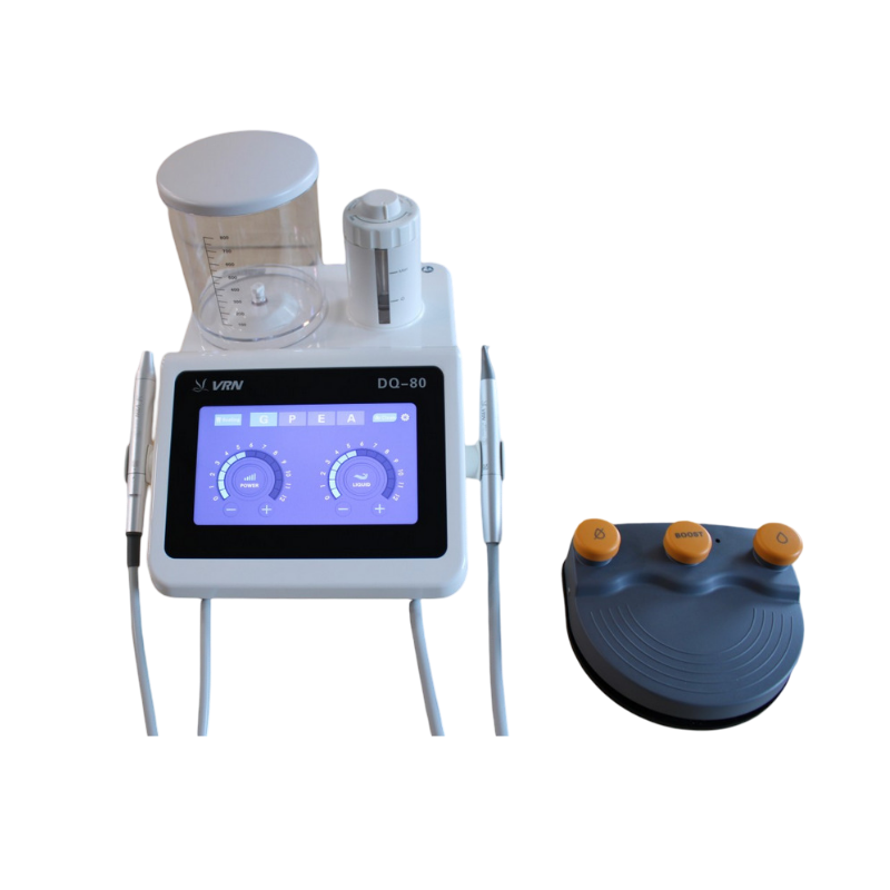 Piaskarko-skaler DQ-80 posiada system ultradźwiękowy oraz system piaskowania proszkowego. Nadaje się do skalingu, leczenia przyzębia, piaskowania oraz irygacji kanałów korzeniowych. Wyposażony jest w siedmiocalowy ekran dotykowy z pełną regulacją, rozbudowane funkcje piaskowania i innych metod leczenia oraz szereg zaawansowanych, inteligentnych rozwiązań, które ułatwiają przeprowadzanie zabiegów stomatologicznych.