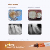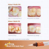Najnowsza Activa Bulk Flow – nowa, ulepszona, bardziej płynna formuła. Samopoziomująca – uwalnia Fluor, wapń i fosforan – Podwójne utwardzalna – Tolerancja wilgoci – Nie zawiera BPA - jeden kolor z zastosowaniem techniki Shade Fusion, - Wspiera remineralizację - Widoczna na Rtg.
