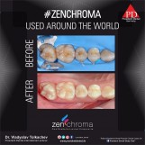 Zenchroma to uniwersalny światłoutwardzalny kompozyt, który dostosowuje się barwą i odcieniem do natury zęba, zastępuje 16 kolorów gamy Vita, dedykowany do wszystkich klas ubytków zęba.
