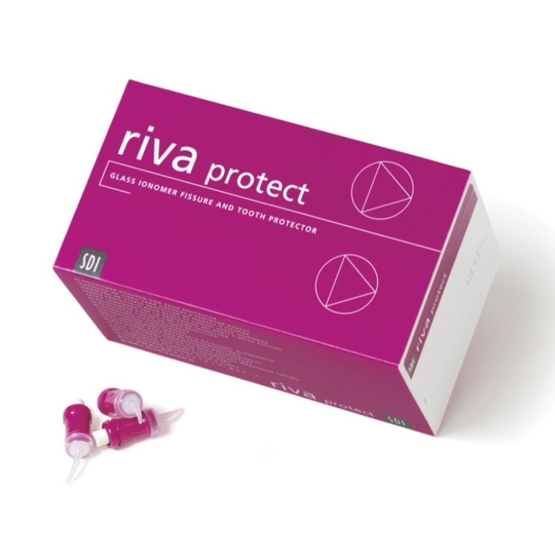 Riva Protect chroni przed rozwojem próchnicy bruzdy, szczeliny oraz powierzchnie niecałkowicie wyrżniętych zębów, które mogą być szczególnie narażone na powstawanie ubytków.